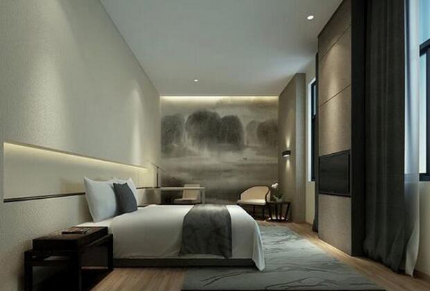 精品酒店房间墙面格调以宁静、舒适为主。少用凸凹、起伏变化,墙面可选择涂料、壁纸、壁布和木质装饰板作为装饰,达到温馨和谐的装饰效果。采用素洁光滑的墙体或图案简单、平滑的造型,色彩选用明度较高的白色或清淡的中性色,以取得宽敞明亮的房间空间效果。