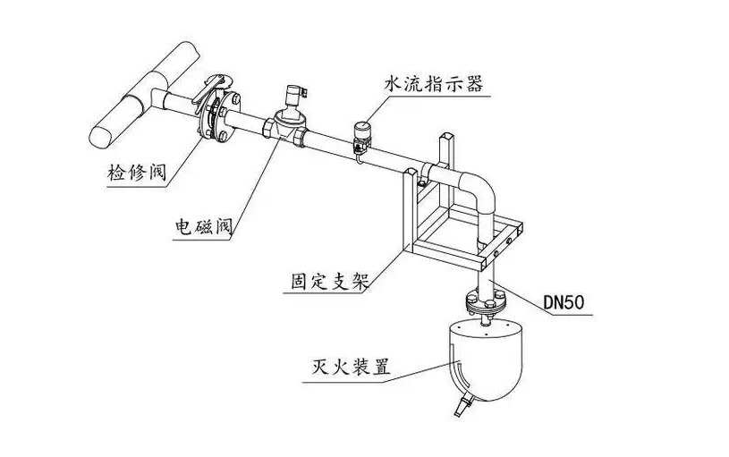 2、为方便检修(检修时关停的范围不致过大),通常在水流指示器入口前设置阀门,该阀门应采用信号阀,且与水流指示器之间的距离不宜小于300mm。