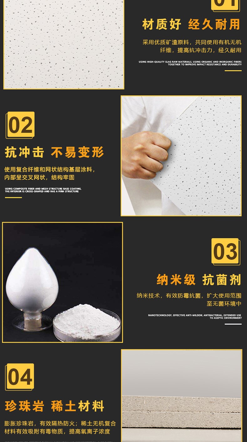矿棉板吊顶装修材料石膏板天花板隔音板安装