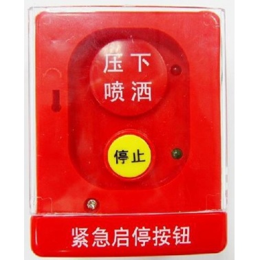 安装在气体灭火保护区门外,用于现场紧急启动、停止气体灭火控制设备。需要紧急启动时,按下“压下喷洒”按钮,此时红灯亮,实现气体灭火启动操作。