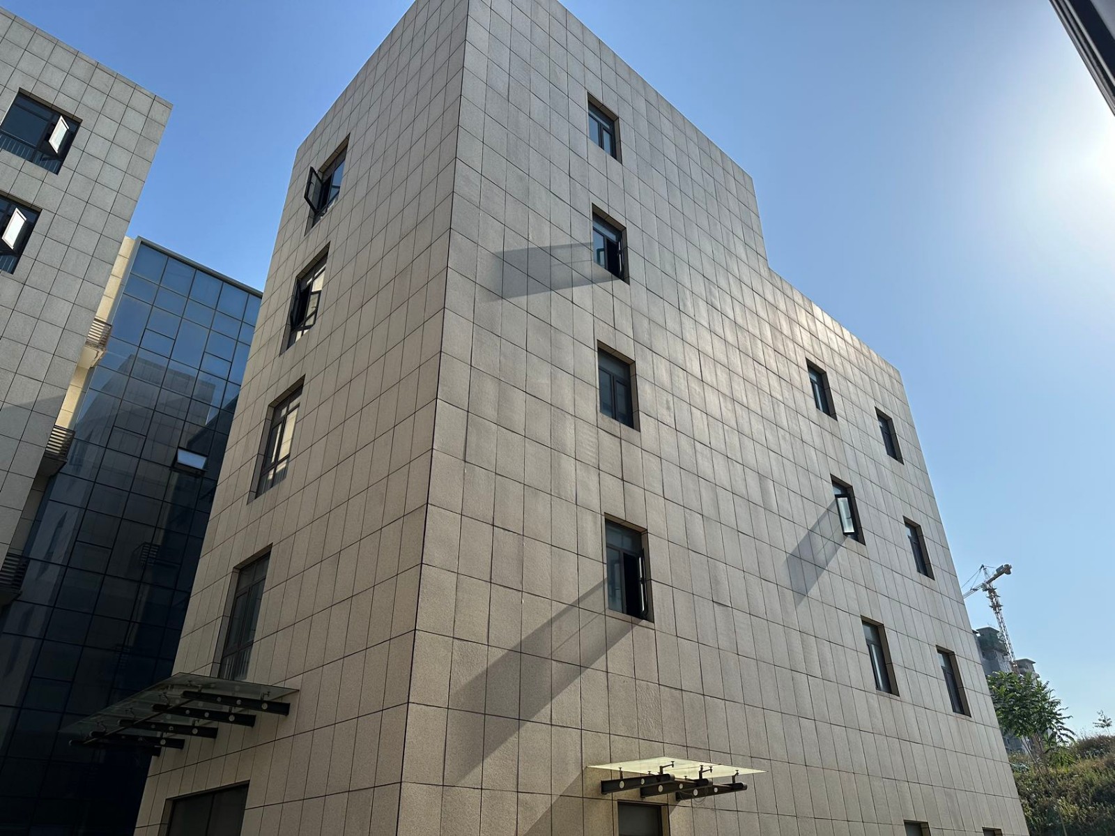 外立面:石材+玻璃幕墙