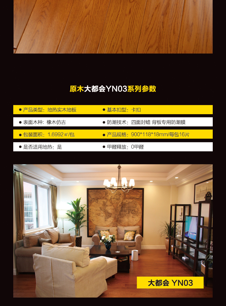 商品名称:欧圣地板 YN系列地热实木地板防潮防滑高端环保超耐磨地板