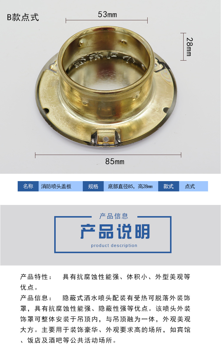 商品名称:消防喷淋头 消防隐蔽式喷头盖板 面板 装饰板 外壳 装饰盖 壳子