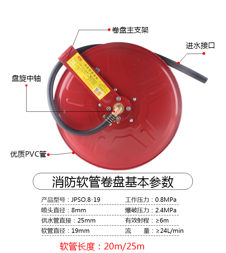 商品名称:消防器材消防水带软管卷25米消火栓箱自救水管水龙带工程款