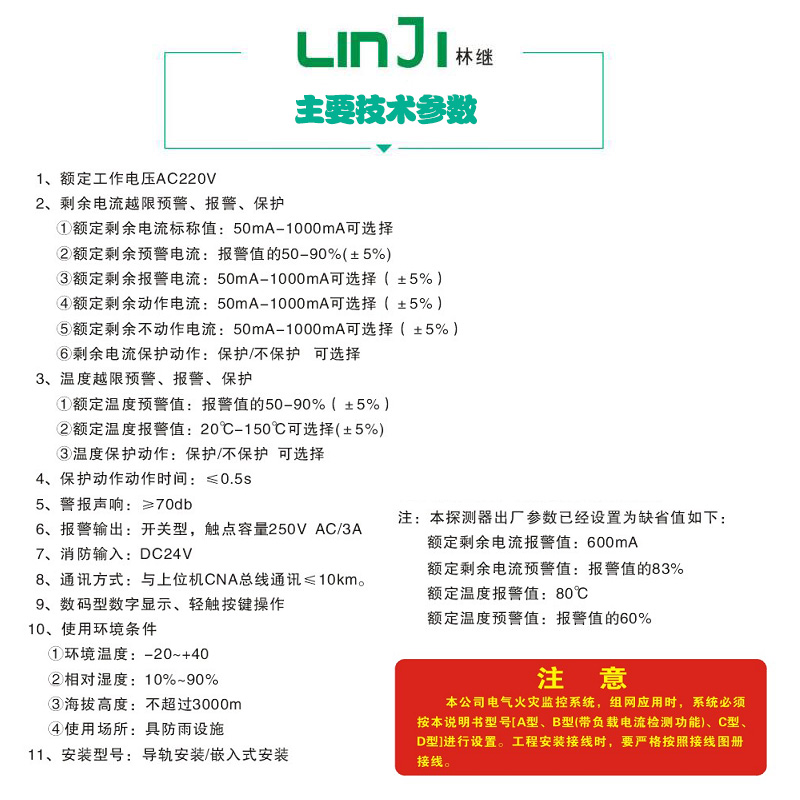 商品名称:电气火灾监控报警器380V剩余电流式漏电火灾探测系统一体分体式