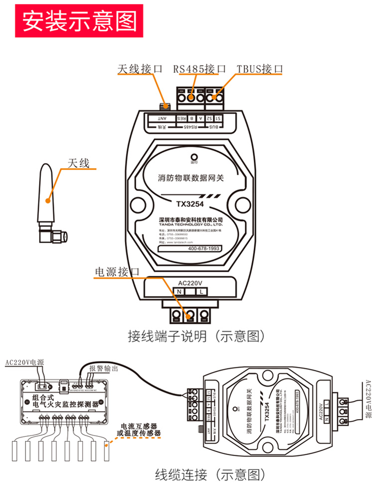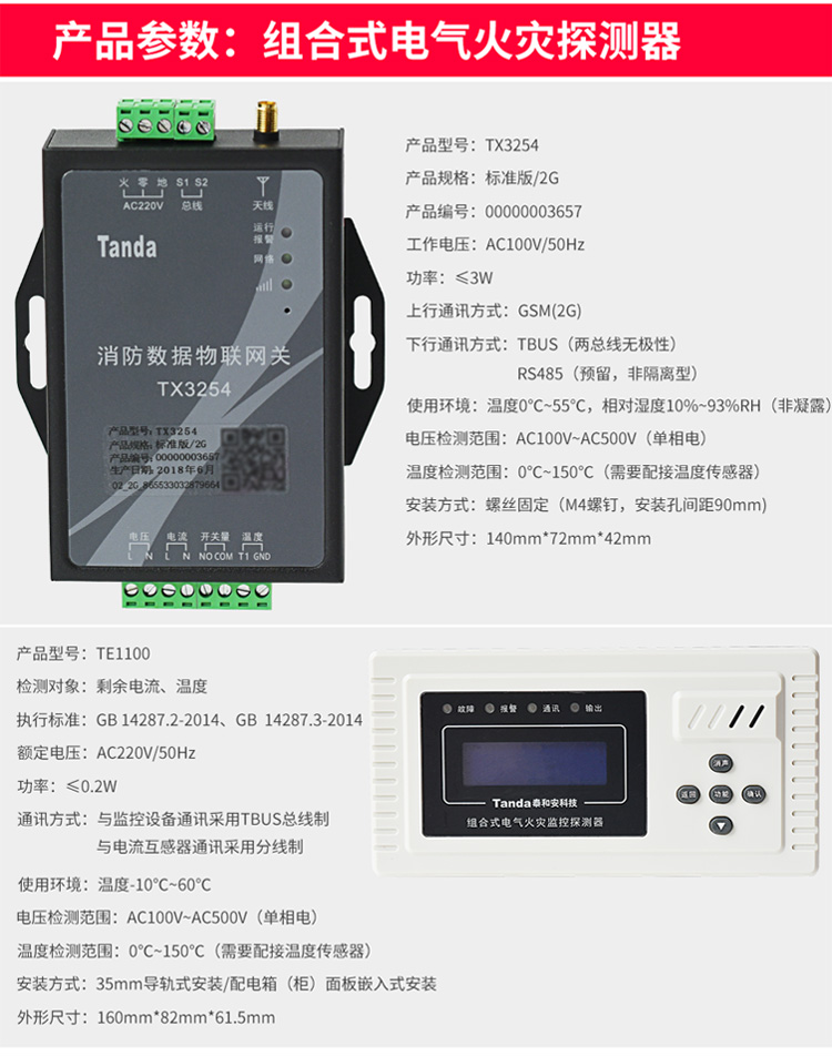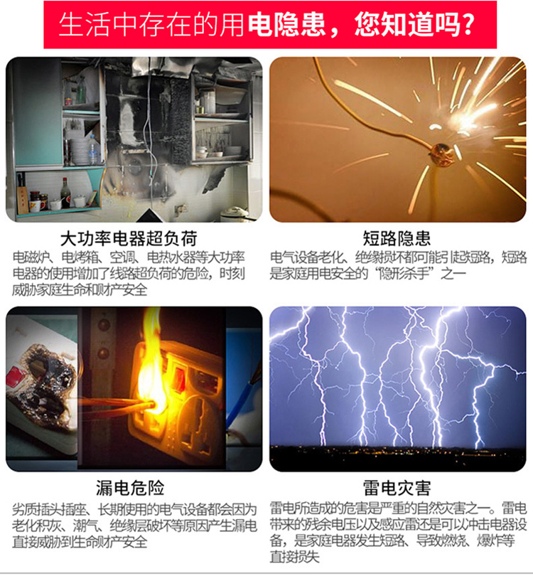 商品名称:智慧安全用电剩余电流式电器电气火灾监控系统电弧漏电探测报警器